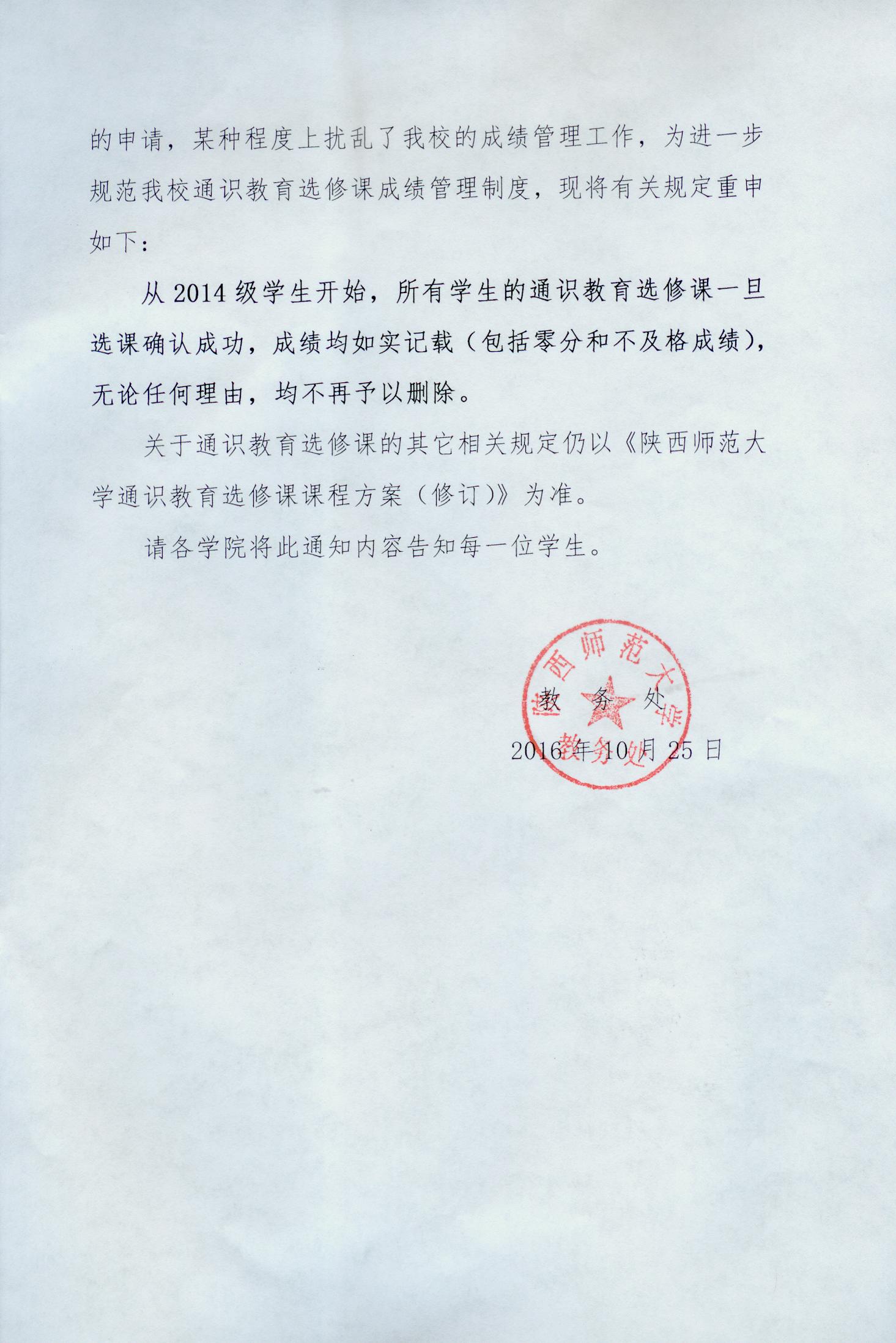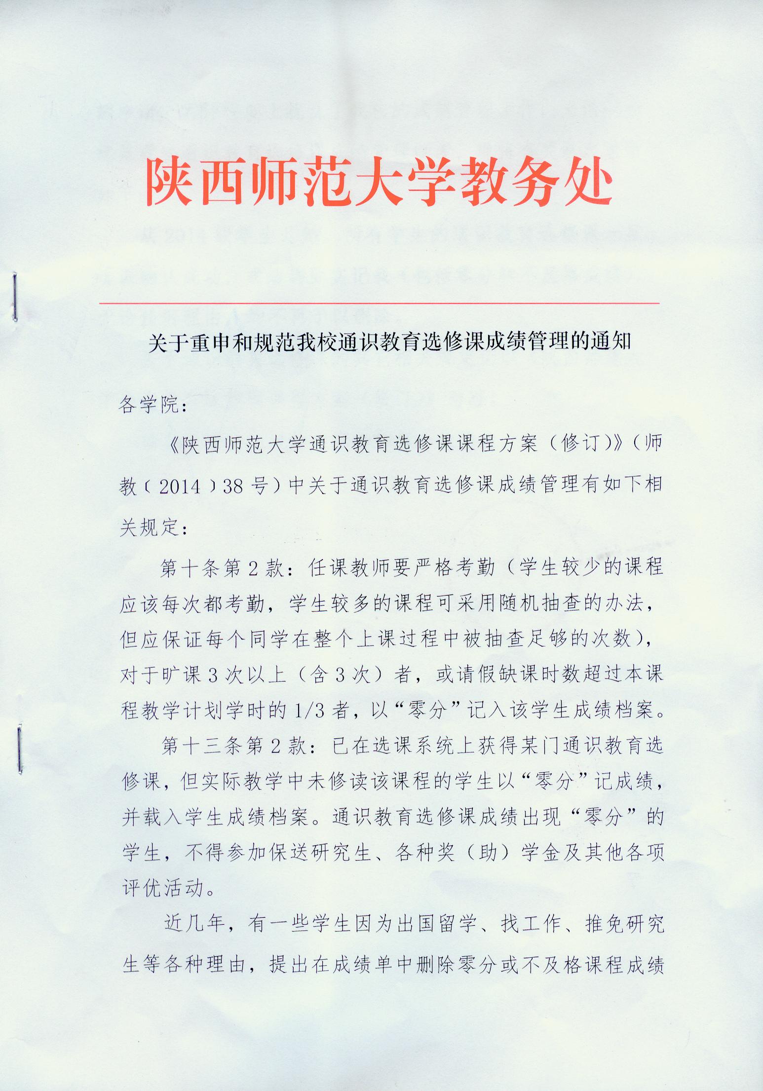 关于重申和规范我校通识教育选修课成绩管理的通知